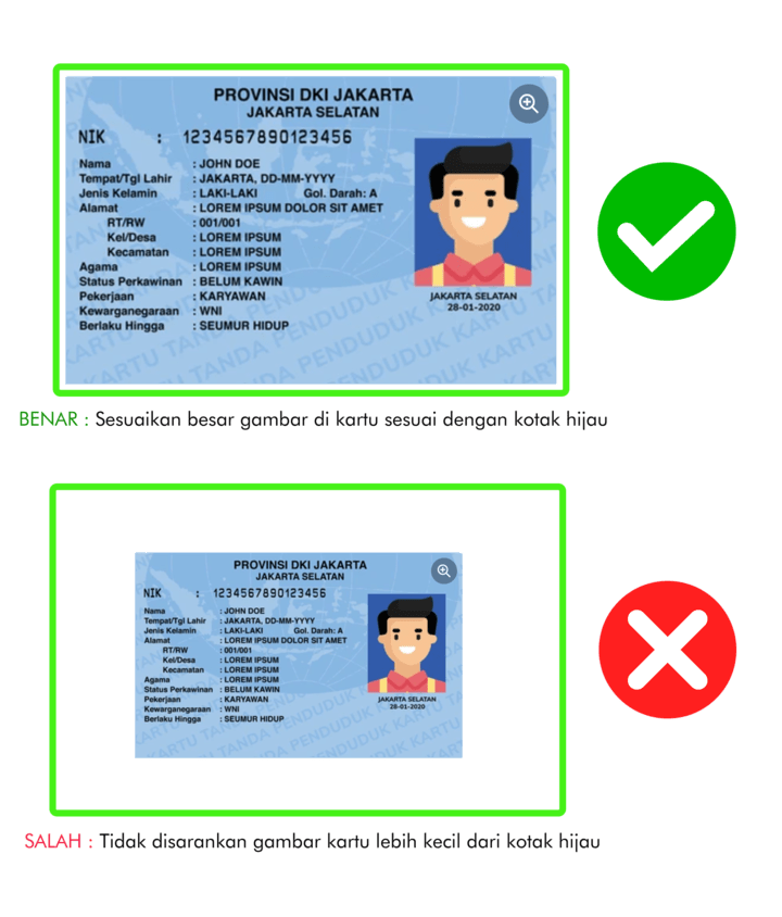 Info : Posisikan kartu identitas anda sesuai dengan kotak hijau